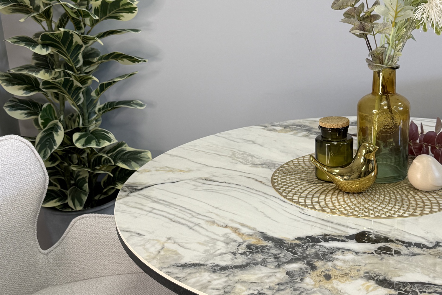 Керамическая столешница устойчива к металлическим предметам, выдерживает до 1000°C и поддерживает свой первоклассный облик без изменений. Также она безопасна для аллергиков, позволяя размещать еду непосредственно на поверхности.