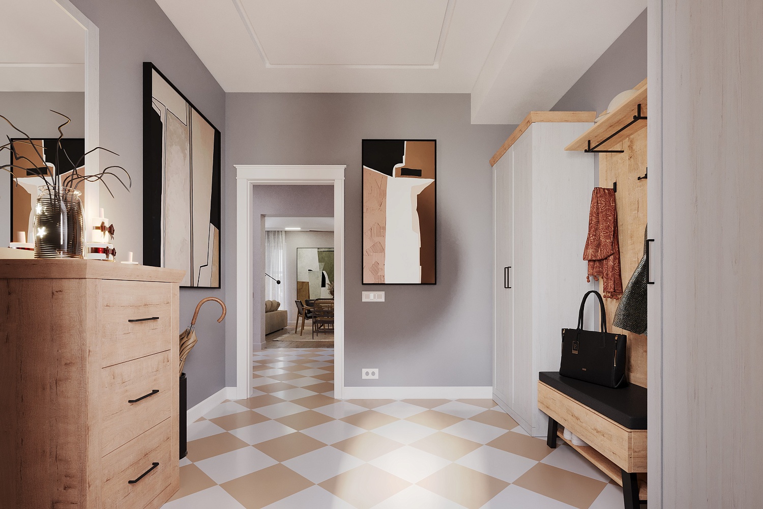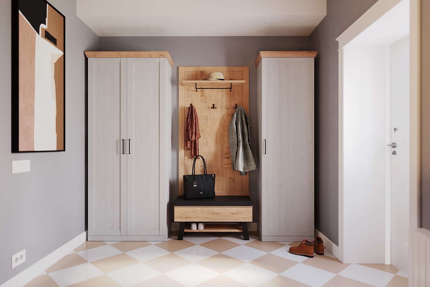 – описание: стиль современный, минимализм, цвет дуб бунратти, блан шене, назначение для прихожей.