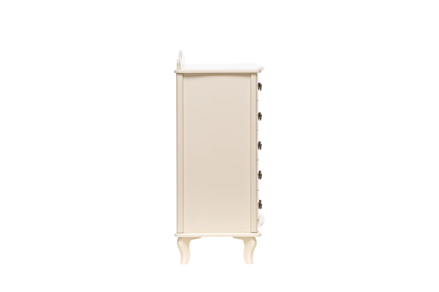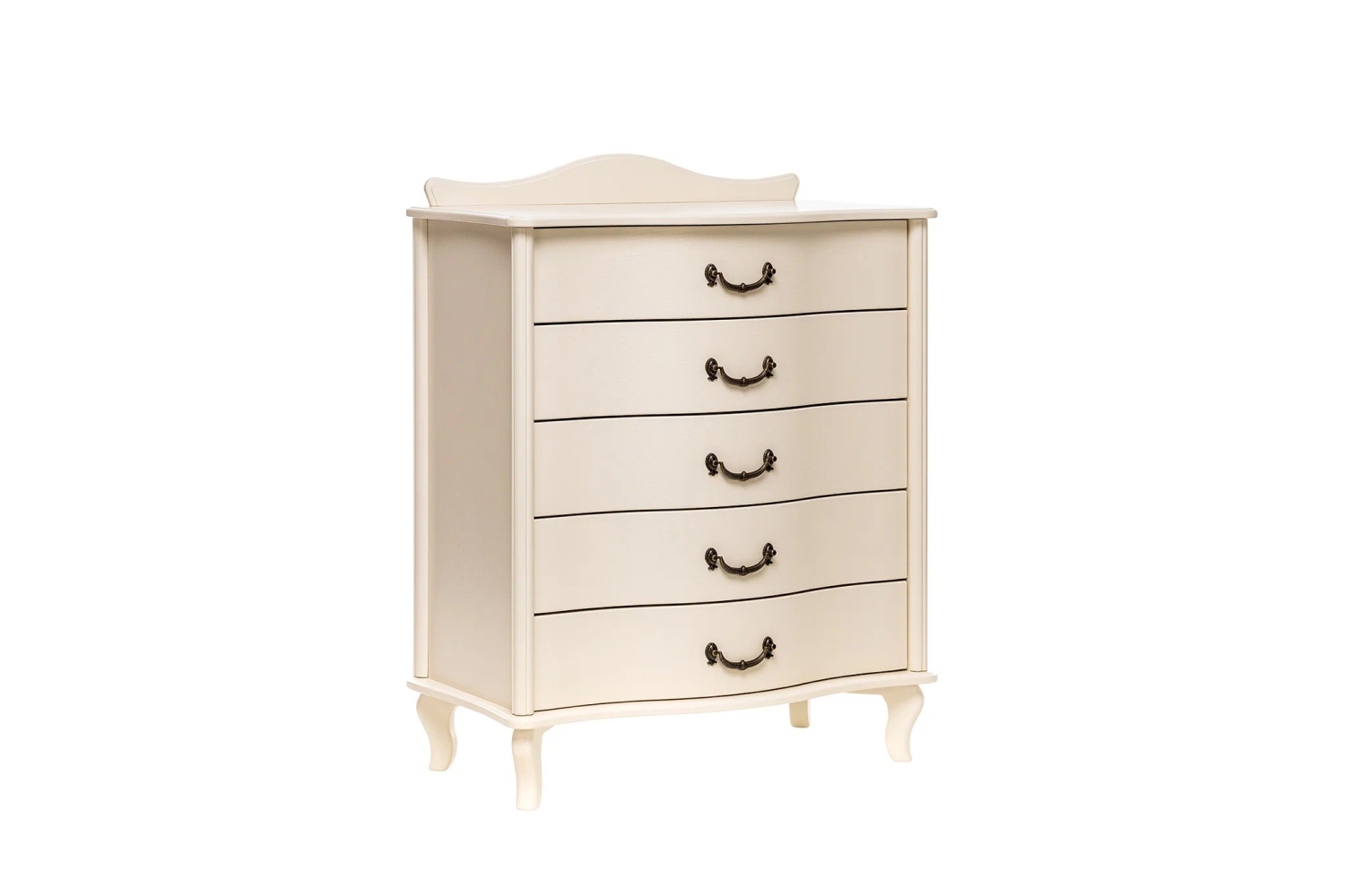 Классический комод Джульетта - воплощение вневременной элегантности и безупречного вкуса. Пять удобных выдвижных ящиков позволяют наиболее функционально использовать пространство и объем комода. Материалы, из которых выполнен комод, обеспечивают высочайшую надежность. Модель, вдохновленная лучшими традициями европейской мебели, станет изысканным акцентом в вашем интерьере. Плавные линии резных ножек-кабриолей придают комоду утонченную грацию и воздушность.